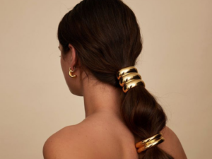 Il fascino del pony cuff risiede nella sua essenza minimal ma d’impatto. È l’accessorio perfetto per chi ama linee pulite, look essenziali e outfit sobri, ma vuole inserire un punto di luce, un elemento che cattura l’occhio. In un’epoca in cui anche la moda si sta muovendo verso il concetto di “less but better”, questi dettagli diventano il mezzo ideale per comunicare personalità con eleganza. Un pony cuff dorato su una coda tiratissima diventa gioiello e acconciatura insieme. Un cilindro oversize in resina colorata può rompere la monocromia di un total look scuro, mentre una versione argentata riflette la luce del viso, creando un’armonia visiva con il makeup. Il messaggio? Basta poco per esprimere moltissimo.